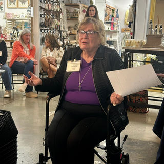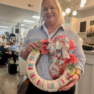 Our March meeting was held at The Mercantile, and they were such a gracious host! Our members braved the rainy and stormy weather and were treated to a private shopping experience. Everyone in attendance also received a generous gift from the owner of The Mercantile, Kay Miller. There were several wonderful door prizes, and two very special door prizes donated by Marilyn Chiaramonte member and owner of Clear Mountain Wreath Creations. She donated a beautiful wreath AND a gift certificate to one of her wreath making classes. If you haven't taken one of her classes yet, you really need to!